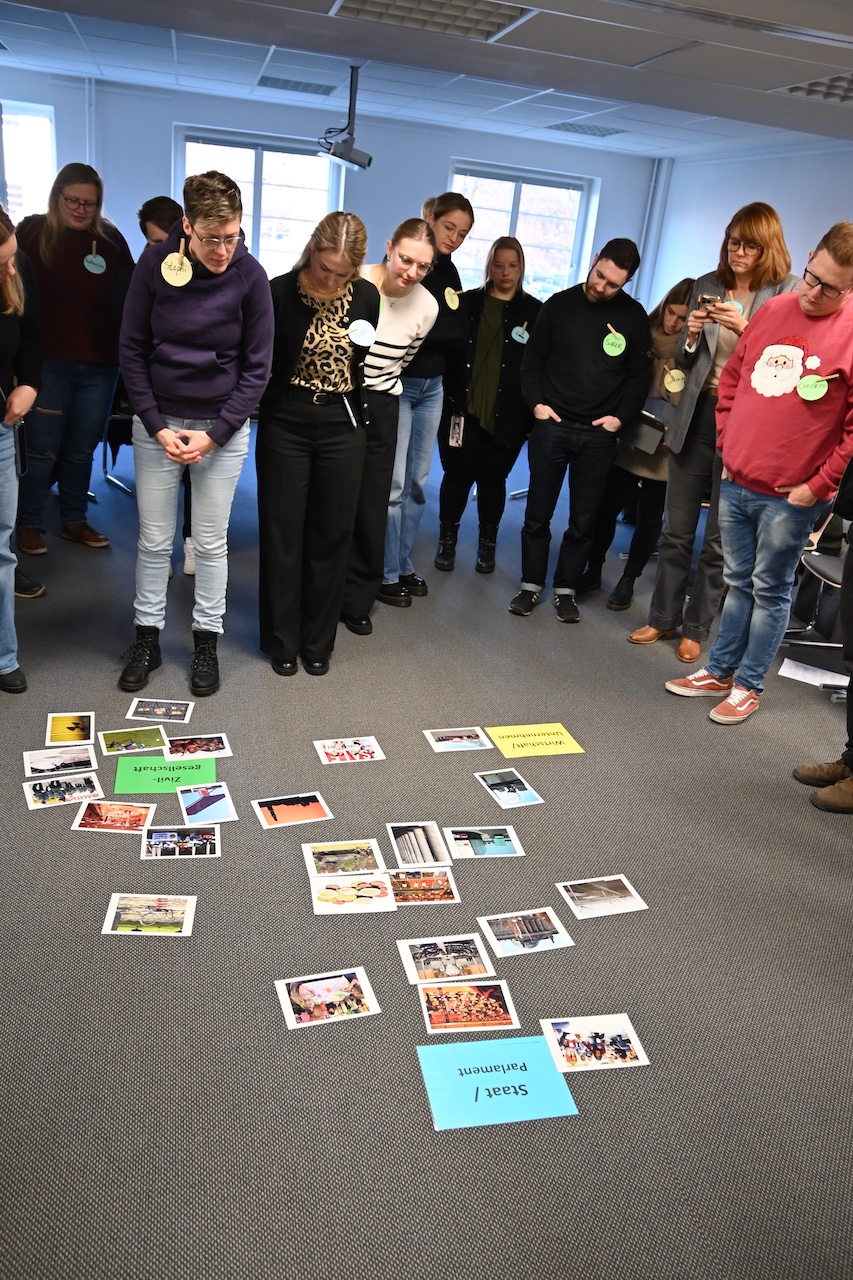 Nach einer aktivierenden Einführung übernahmen die Teilnehmenden unterschiedliche Akteursrollen und verhandelten mit klar zugewiesenen Ressourcen – von politischer, wirtschaftlicher und zivilgesellschaftlicher Macht bis hin zu finanziellen Mitteln. In mehreren Spielphasen entstanden dynamische Aushandlungsprozesse, Koalitionen, Konflikte und überraschende Wendungen. Ob Verhandlung oder Konfrontation, Eskalation oder Deeskalation – jede Entscheidung hatte spürbare Folgen.