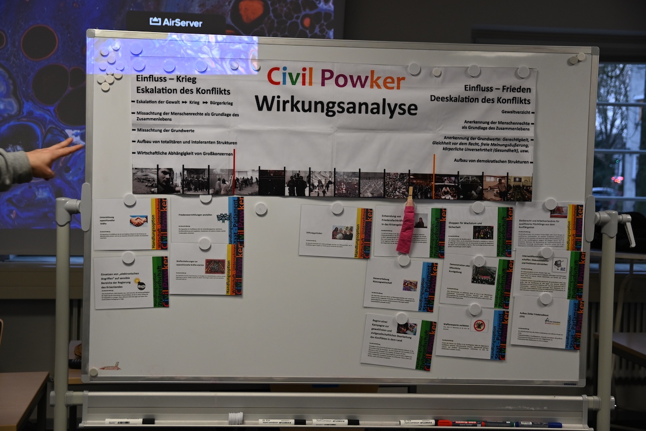 Das Fazit war eindeutig: Civil Powker selbst zu erleben, lohnt sich. Über mehrere Stunden hinweg forderte das Planspiel analytisches Denken, Tatkraft und emotionale Beteiligung – und eröffnete zugleich neue didaktische Perspektiven für den eigenen Unterricht.