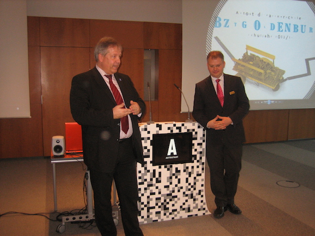 Herr Cukrowski (Geschäftsführer der Firma Tigersoft) und Frau Simonovsky von der Firma Promethean stellten das aktuelle ActivBoard, die Software ActivInspire und andere Schülerlösungen vor.