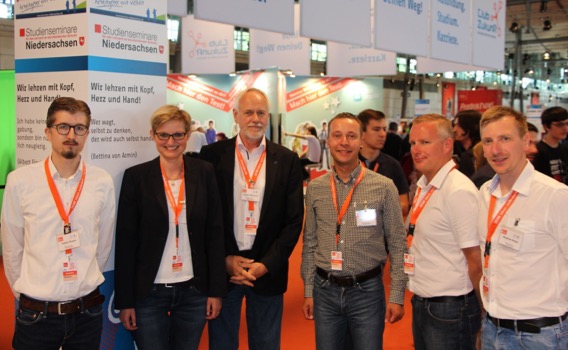 Das Studienseminar stellte sich auf der Ideen-Expo vor. Der Seminarleiter Jürgen Wiemann und seine ständige Vertreterin Stefanie Fischer wurden dabei von einigen Auszubildenden der Fachrichtung Metalltechnik unterstützt.